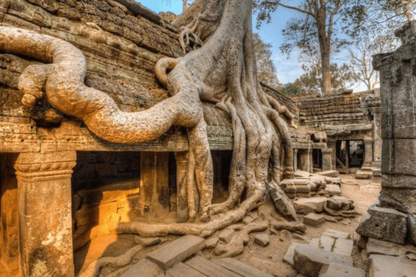 Visit Ta Prohm, the ruins at Ta Prohm date from 1186 and have purposely been allowed to be reclaimed by the jungle. Famous for its appearance in the movie Tomb Raider, this mystical temple is entwined with massive fig and silk-cotton trees. Walking through the crumbling corridors and tree-covered courtyards feels like stepping back in time. This highly atmospheric temple complex is a must-see on any visit to Siem Reap and offers amazing photo opportunities.